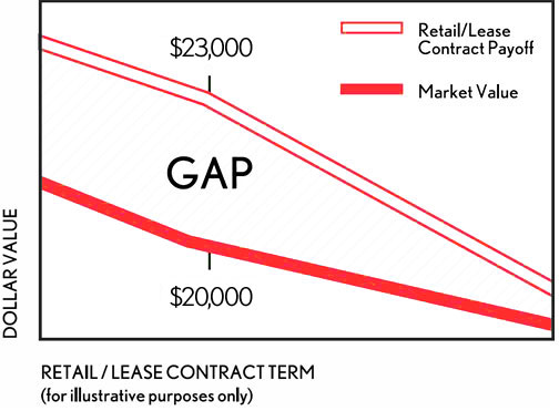 If a total loss occurs without GAP, you are generally responsible for this amount to pay off your retail or lease contract